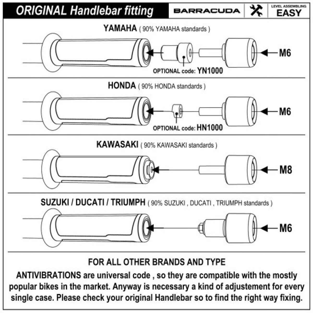 Ils vous permettront d'installer les accessoires Barracuda suivants sur votre deux-roues :