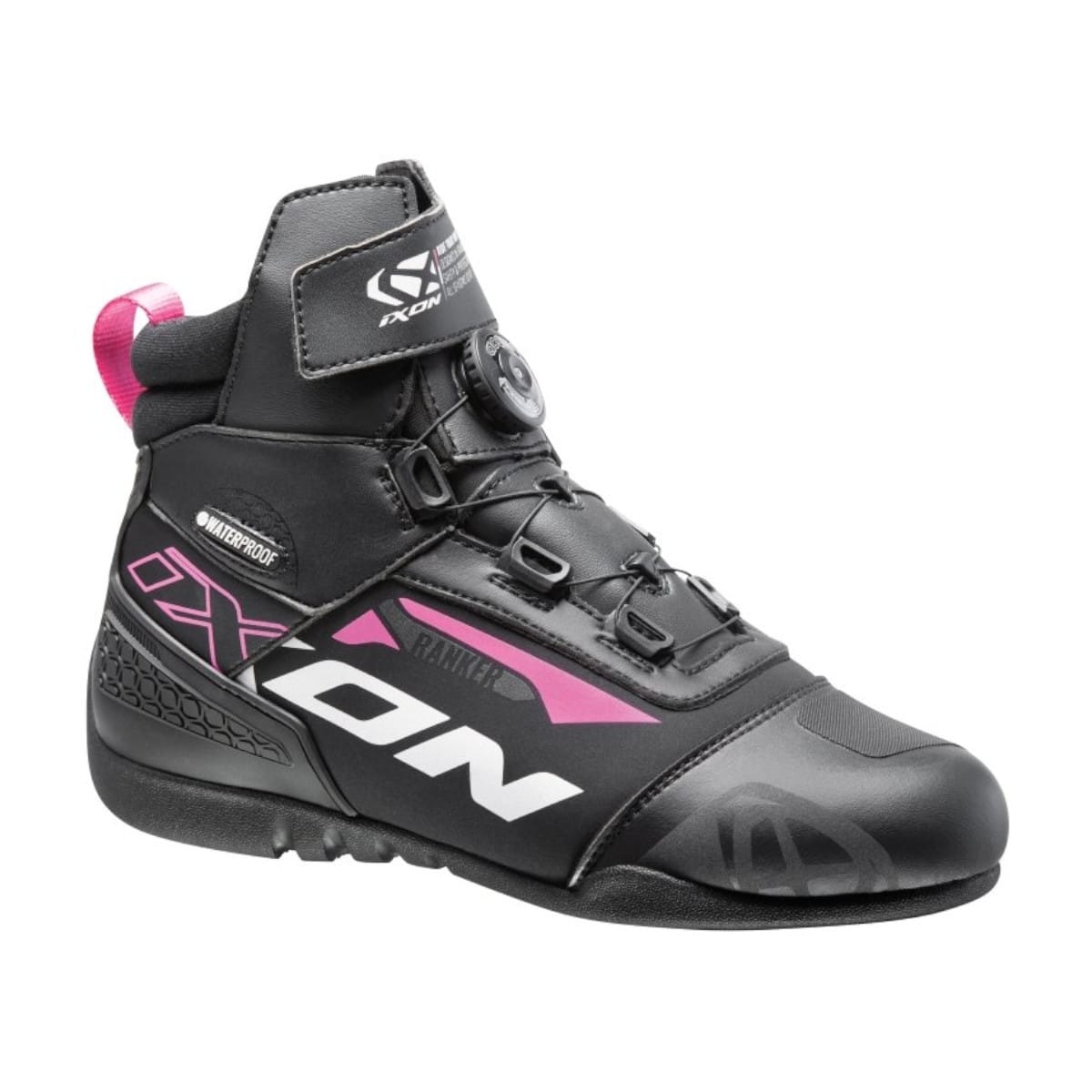 Ixon nous propose ses baskets moto, les Ranker WP Lady en coloris noir, blanc et fuchsia.