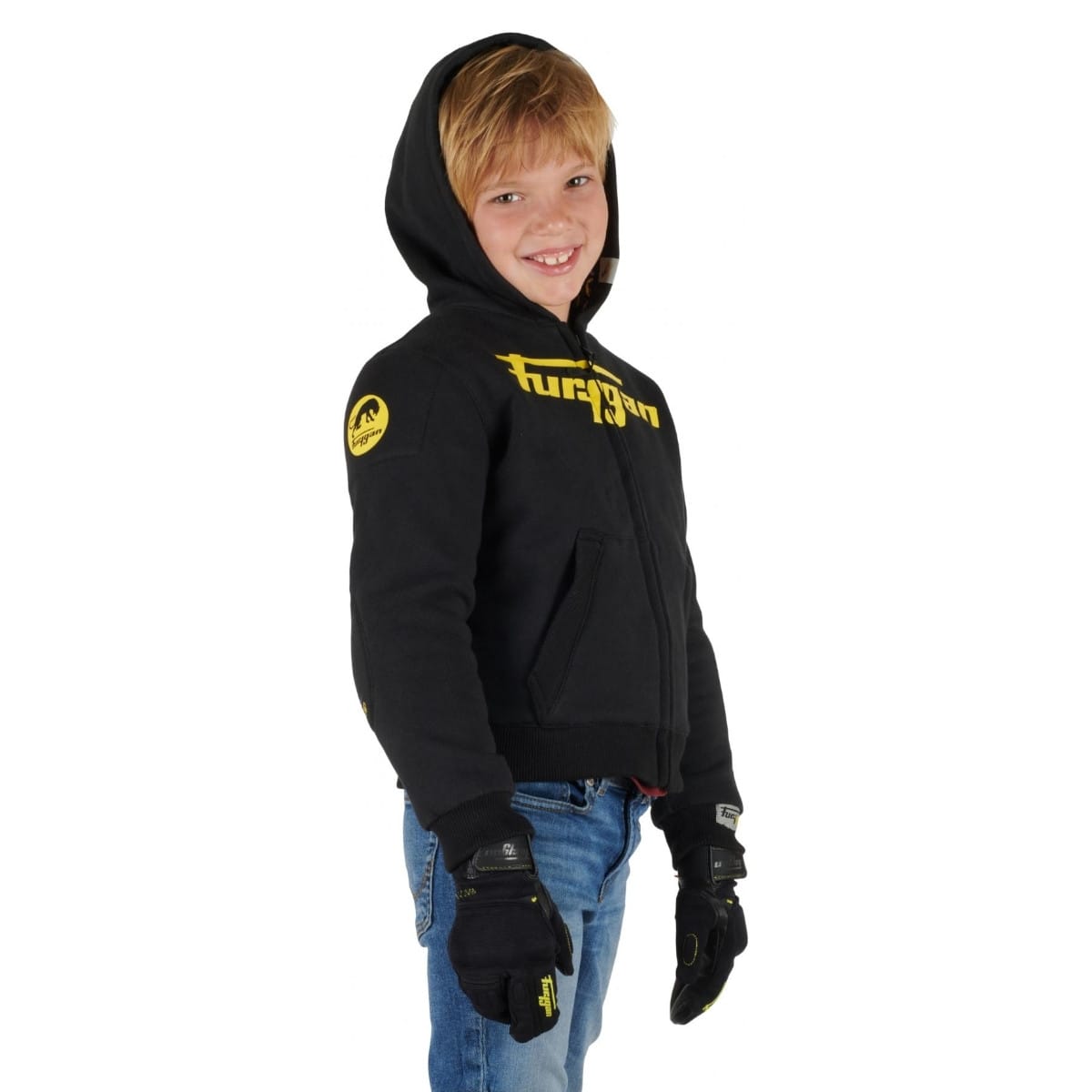 Furygan vous présente son sweat à capuche moto, le Luxio en coloris noir et jaune.