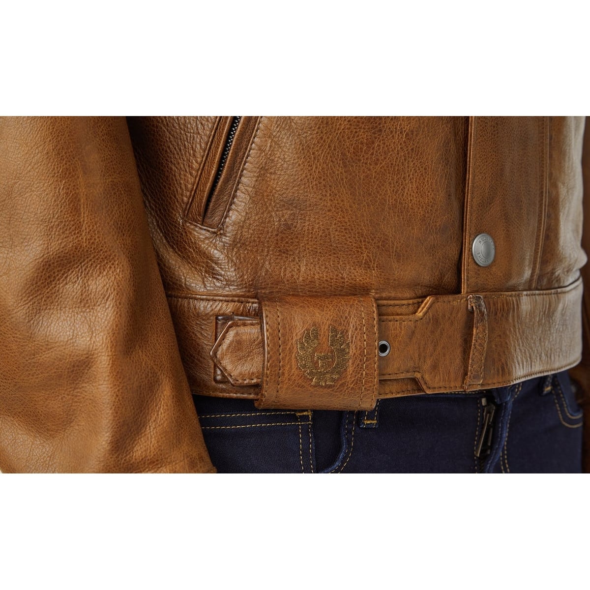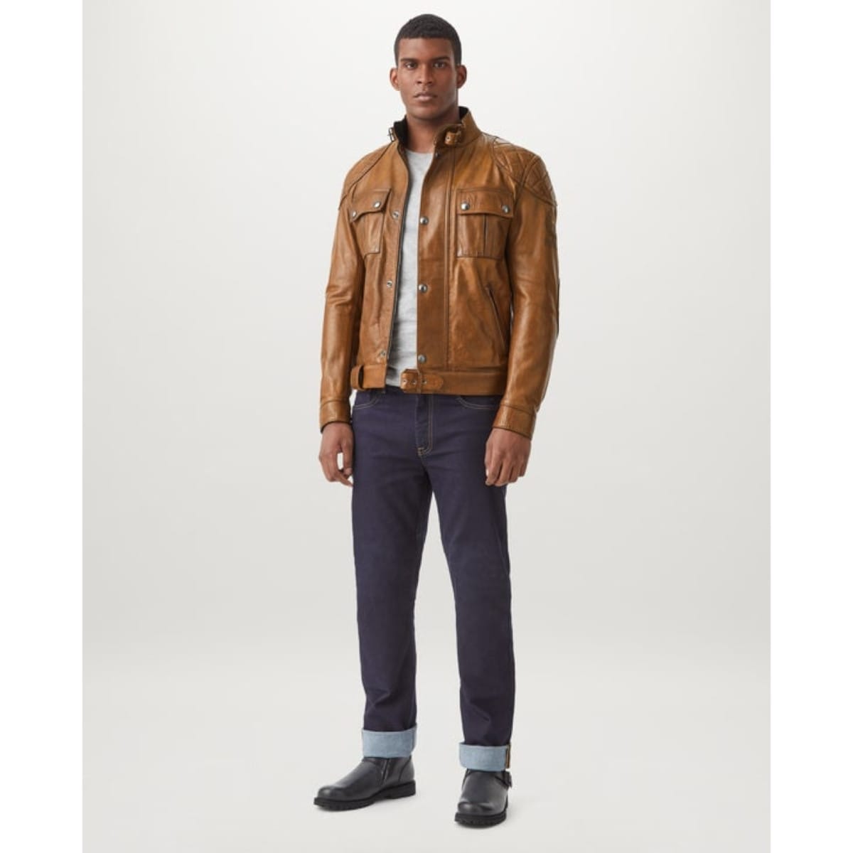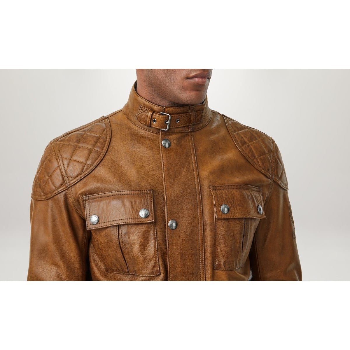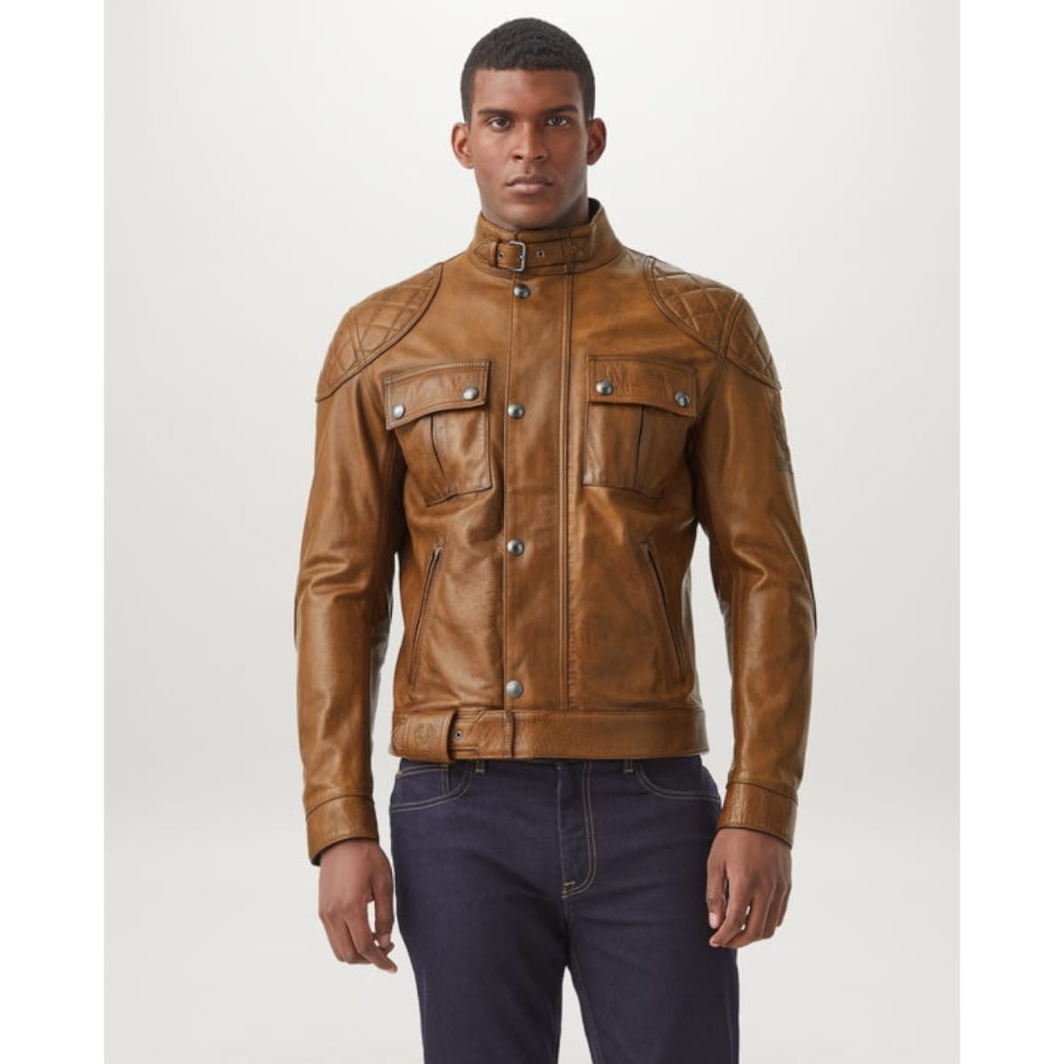 Belstaff nous présente son blouson moto en cuir, le Brooklands en coloris marron clair.
