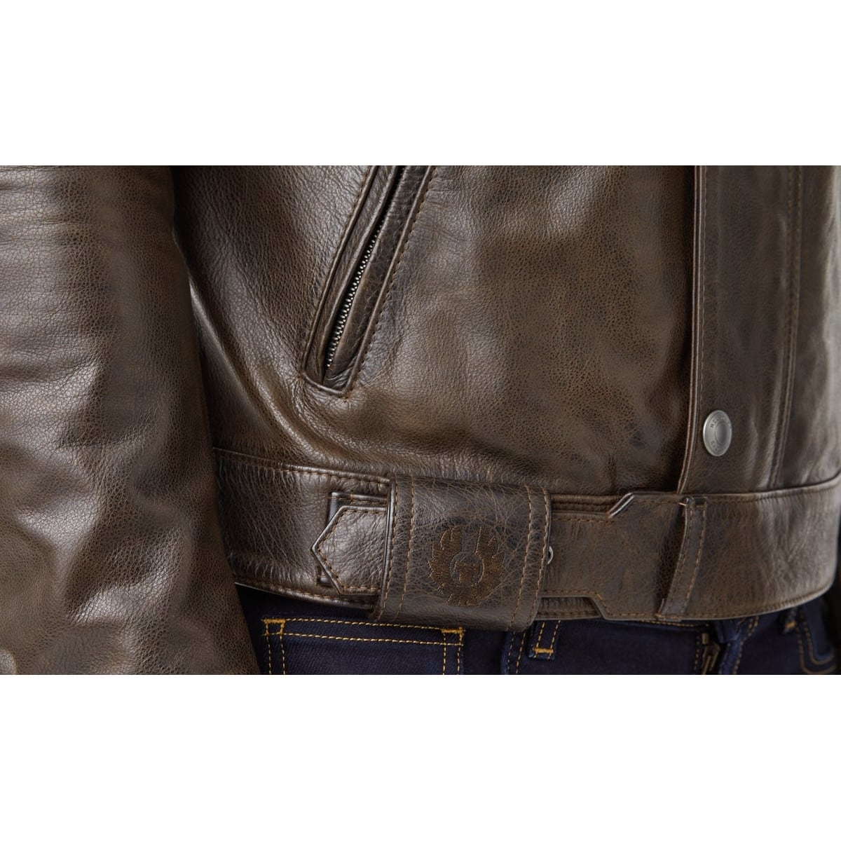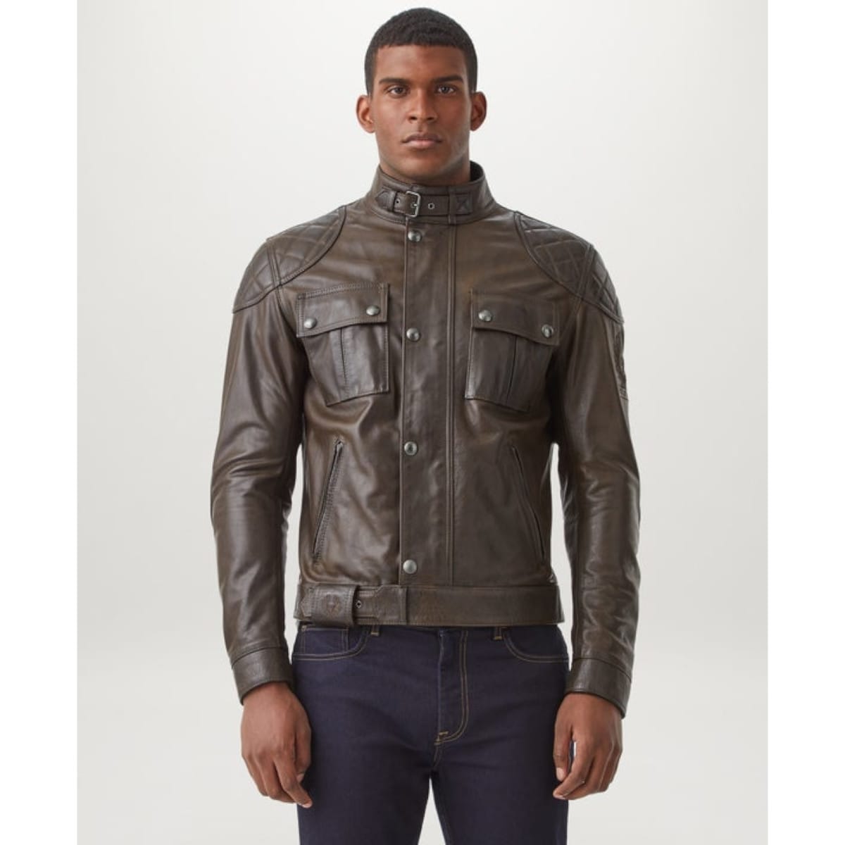 Belstaff nous présente son blouson moto en cuir, le Brooklands en coloris marron foncé.