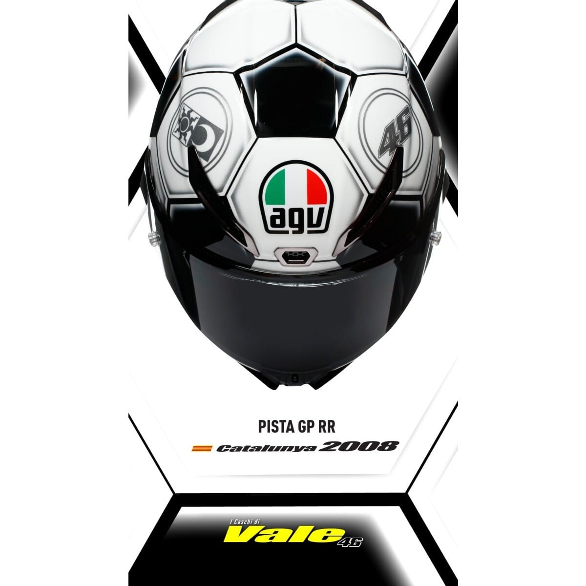 La saga « I Caschi di Vale » édite des casques aux graphismes d'exception afin de célébrer la carrière du pilote Valentin Rossi. Ces casques sont des pièces uniques, des répliques parfaites utilisées par le pilote de Moto GP. Le Catalunya 2008 est le sixième et le dernier de cette collection capsule. C'est un design spécial utilisé par Valentino Rossi sur le GP de Catalogne pour célébrer l'équipe nationale italienne de football, qui se préparait pour l'UEFA Euro 2008.