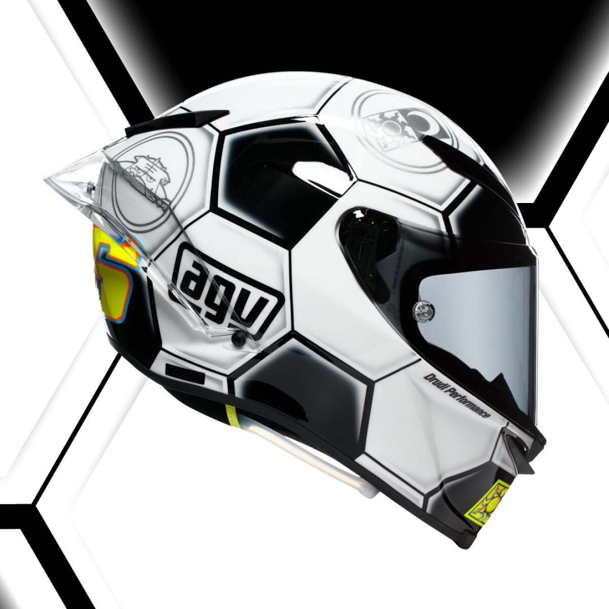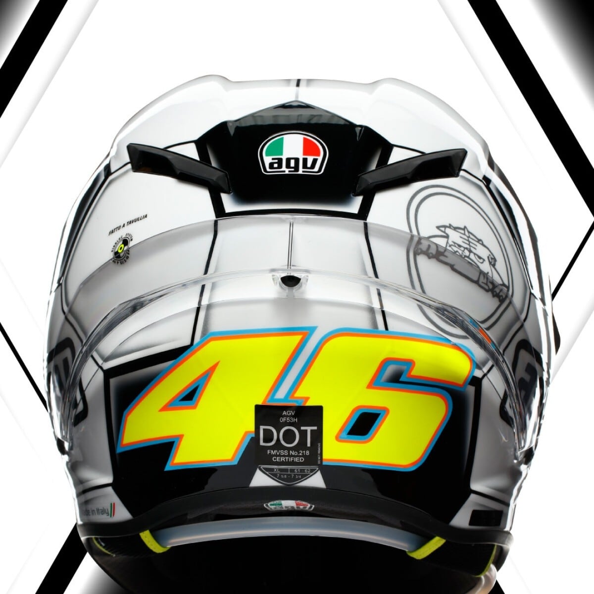Le casque moto AGV série limitée est reproduit en 2008 exemplaires. Ce nombre correspond à l’année d’utilisation du casque initial. L’exemplaire 46 de chaque réplique est gardé par Valentino Rossi pour sa collection personnelle. C’est le moment d’acquérir un casque intégral unique reflétant l’histoire et la compétition !