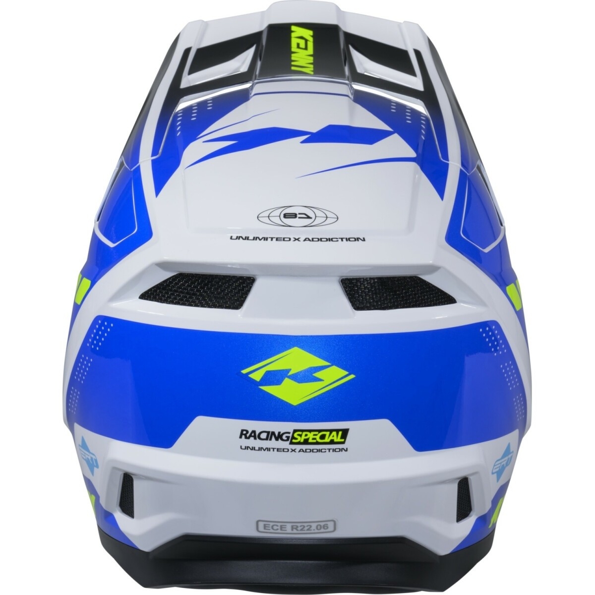 CASQUE CROSS KENNY PERFORMANCE GRAPHIC BLEU BLANC NOIR BRILLANT / L