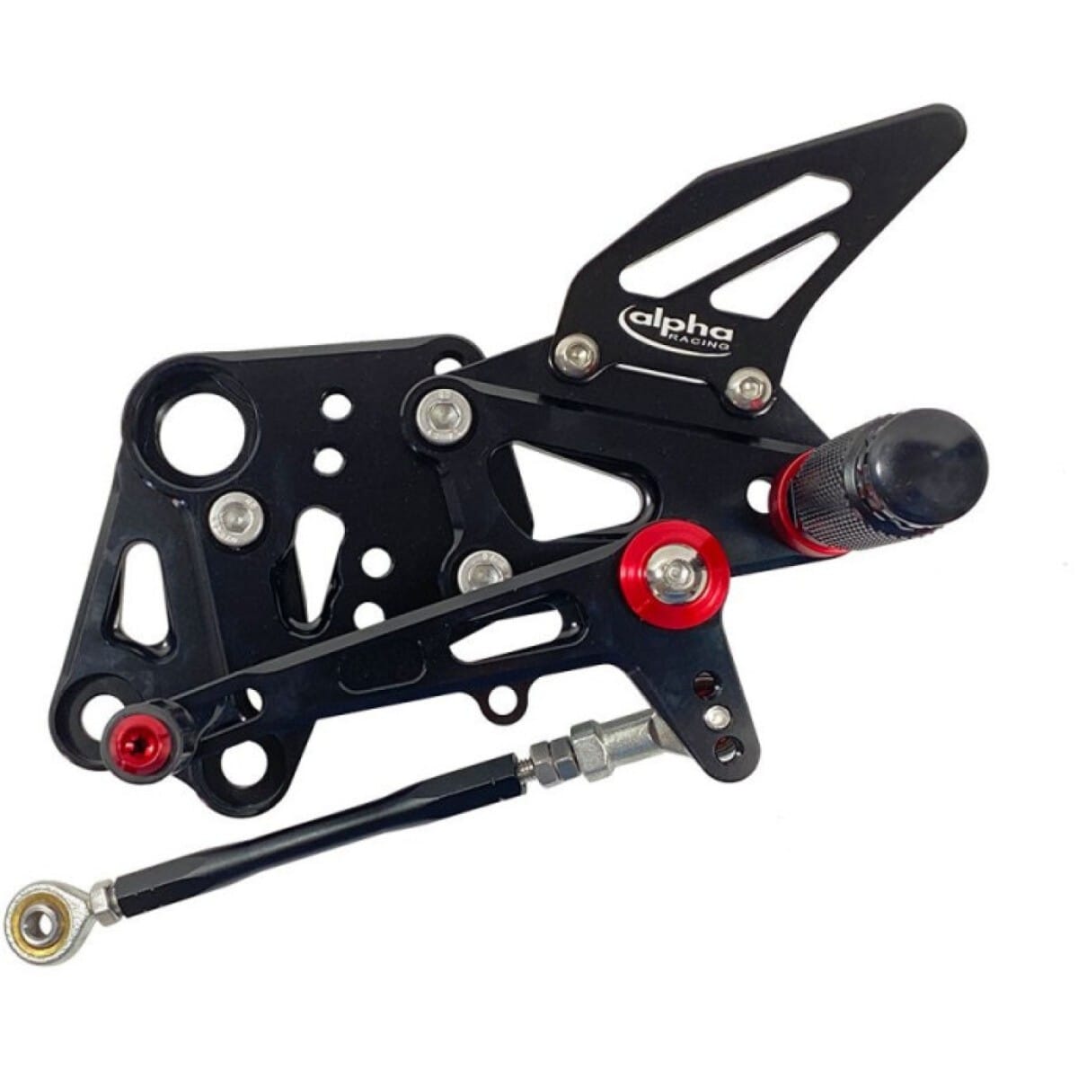 Ces commandes reculées sont pliables, des repose-pieds rigides spécialement conçus pour une utilisation sur circuit sont inclus. Les repose-pieds antidérapants garantissent un grip exceptionnel, tandis que les réglages de distance pour la pédale de frein et le sélecteur sont nombreux pour s'adapter à toutes les morphologies. Les commandes reculées moto sont équipées d'une butée du levier de frein réglable par excentrique, et elles permettent de conserver le contacteur de feux stop d'origine.