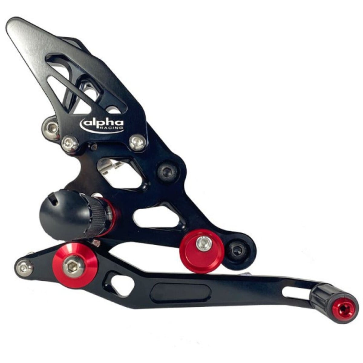 Ces commandes reculées sont pliables, des repose-pieds rigides spécialement conçus pour une utilisation sur circuit sont inclus. Les repose-pieds antidérapants garantissent un grip exceptionnel, tandis que les réglages de distance pour la pédale de frein et le sélecteur sont nombreux pour s'adapter à toutes les morphologies. Les commandes reculées moto sont équipées d'une butée du levier de frein réglable par excentrique, et elles permettent de conserver le contacteur de feux stop d'origine.