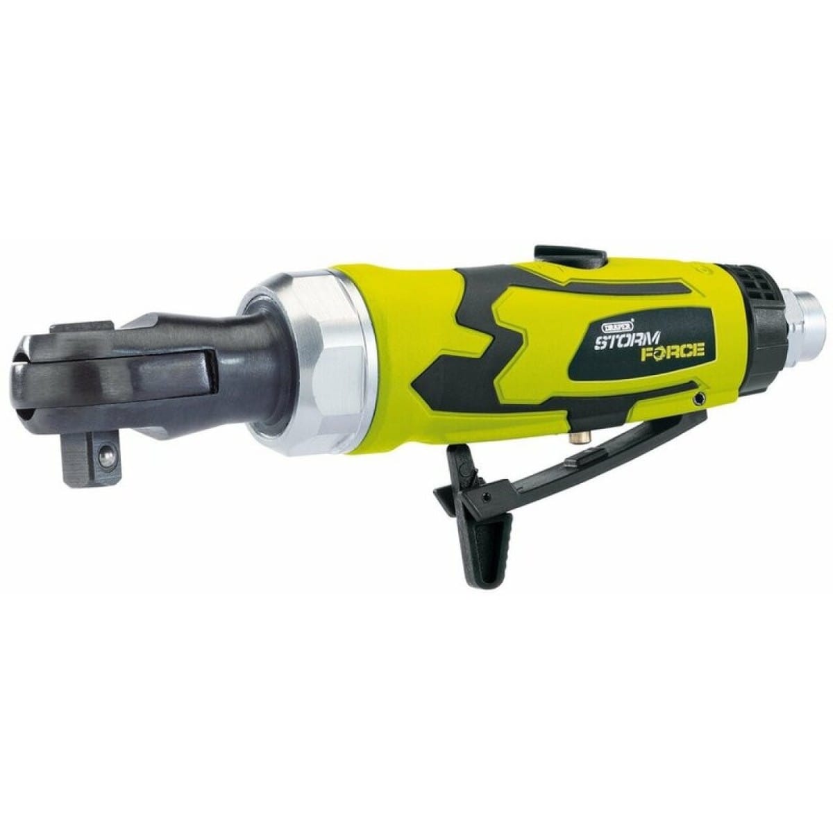 Cliquet 3/8" à corps composite, silencieuse et à faibles vibrations. Équipée d'un moteur haute technologie avec engrenage à cage complète et roulements à aiguilles, d'un simple levier de rotation avant/arrière et d'une entrée d'air rotative pour le confort de l'utilisateur.