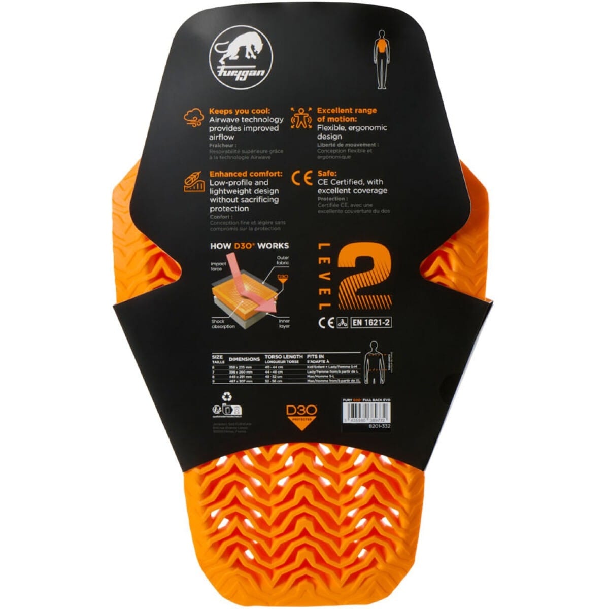 Furygan vous présente sa protection dorsale pour adulte, la FULL BACK D3O EVO en coloris orange.