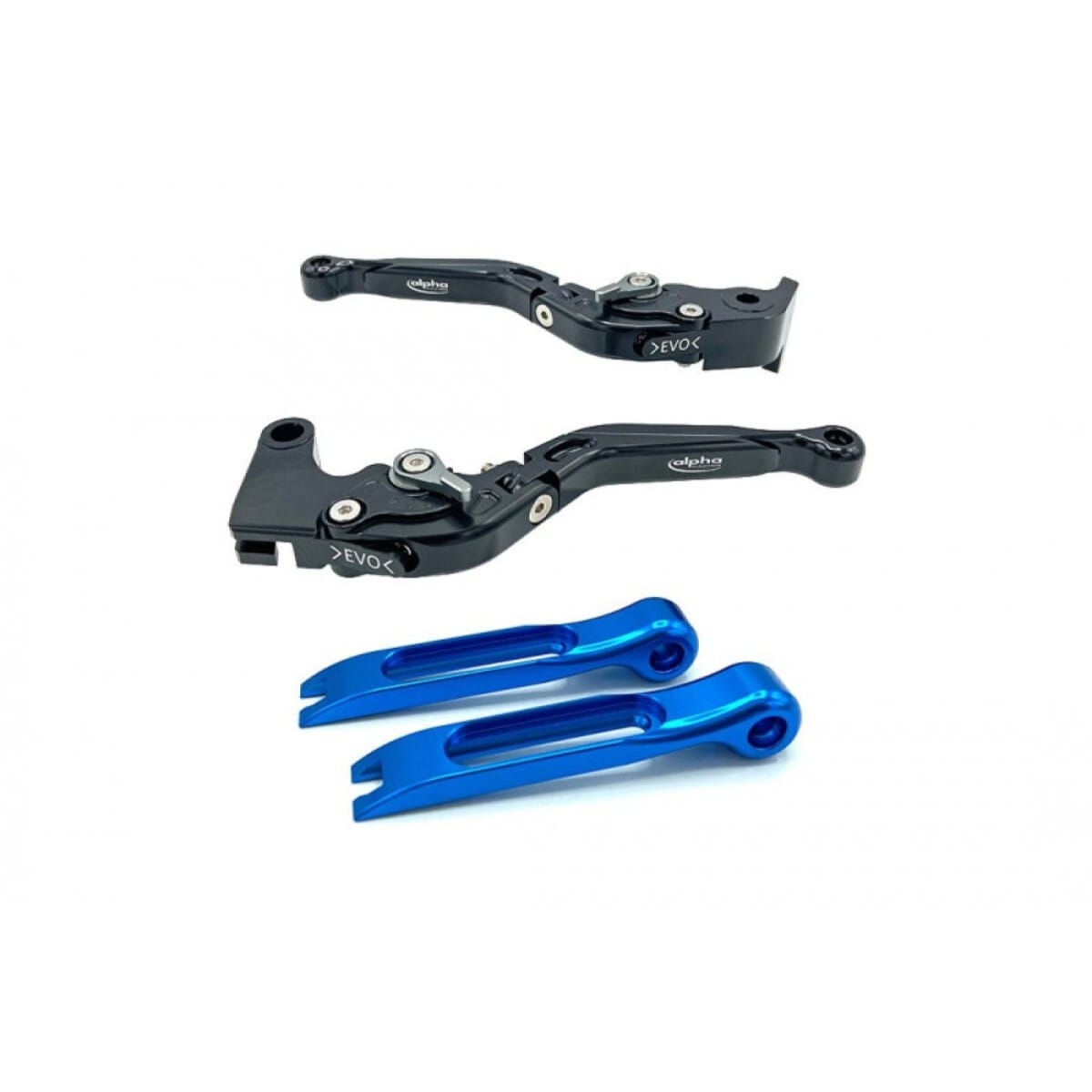 Embouts pour jeu de leviers Evo d'Alpha Racing Aluminium anodisés bleu, livrés par paire pour leviers de frein et d'embrayage.