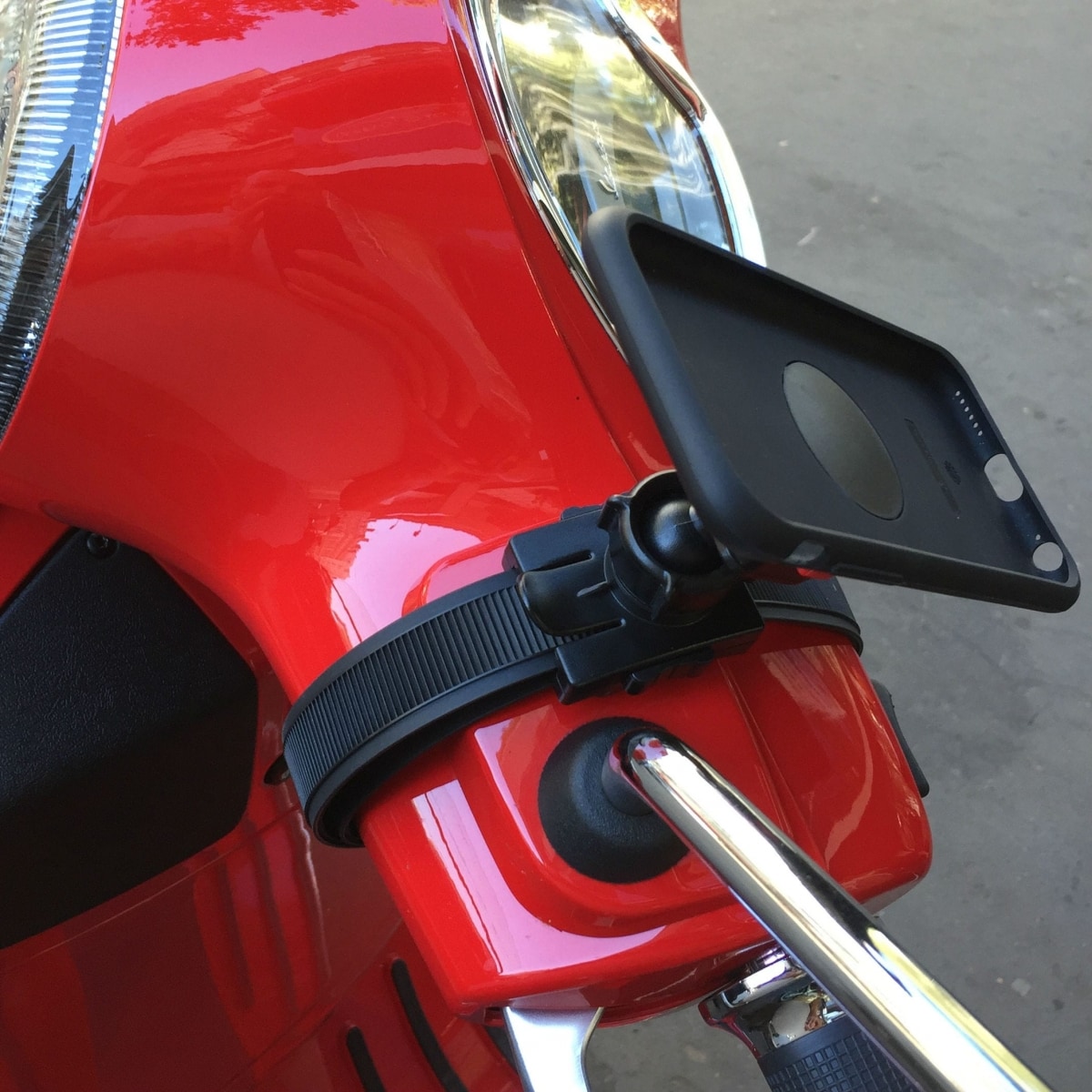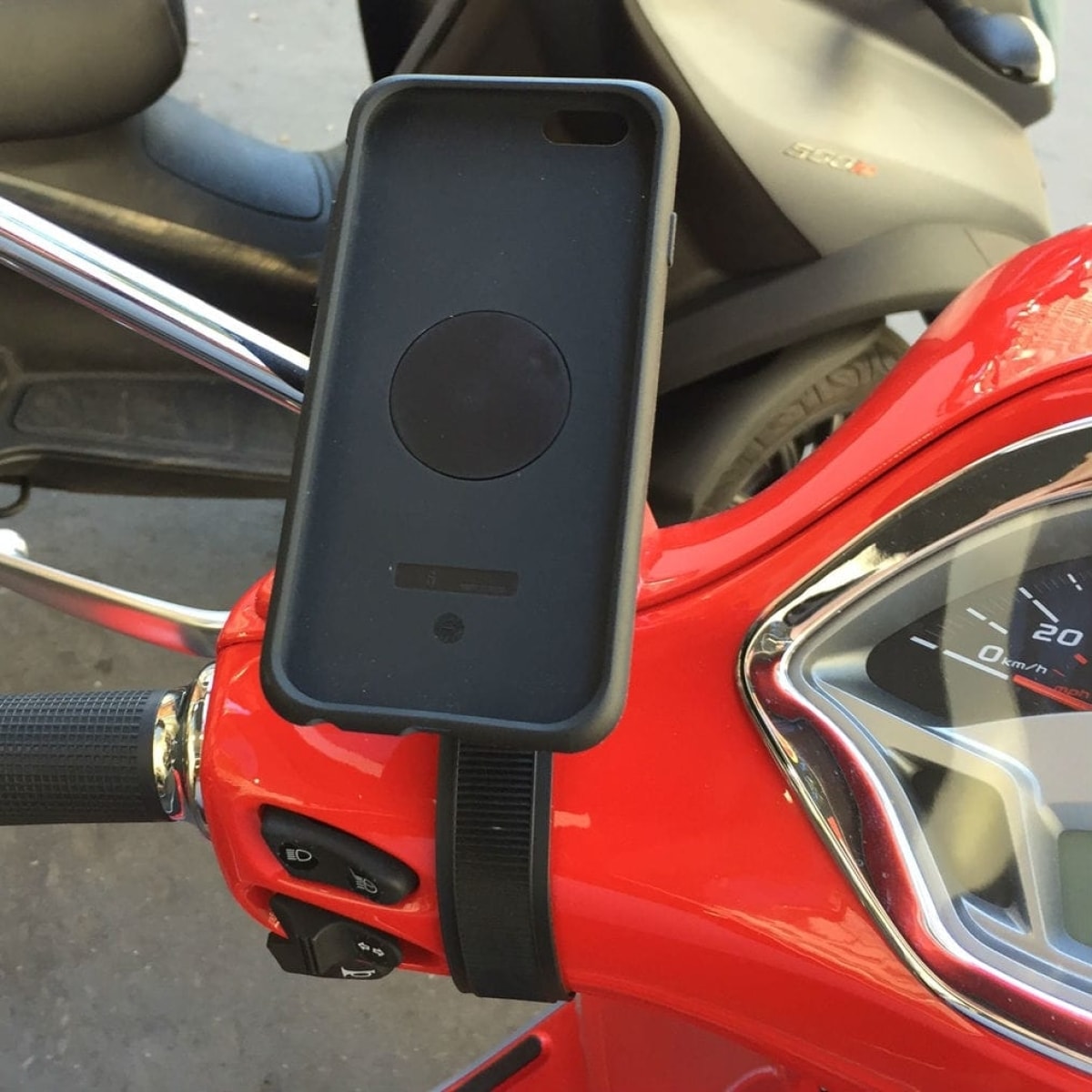 Attaché directement sur le guidon, ce kit de fixation scooter permet d'utiliser son smartphone en mode GPS.