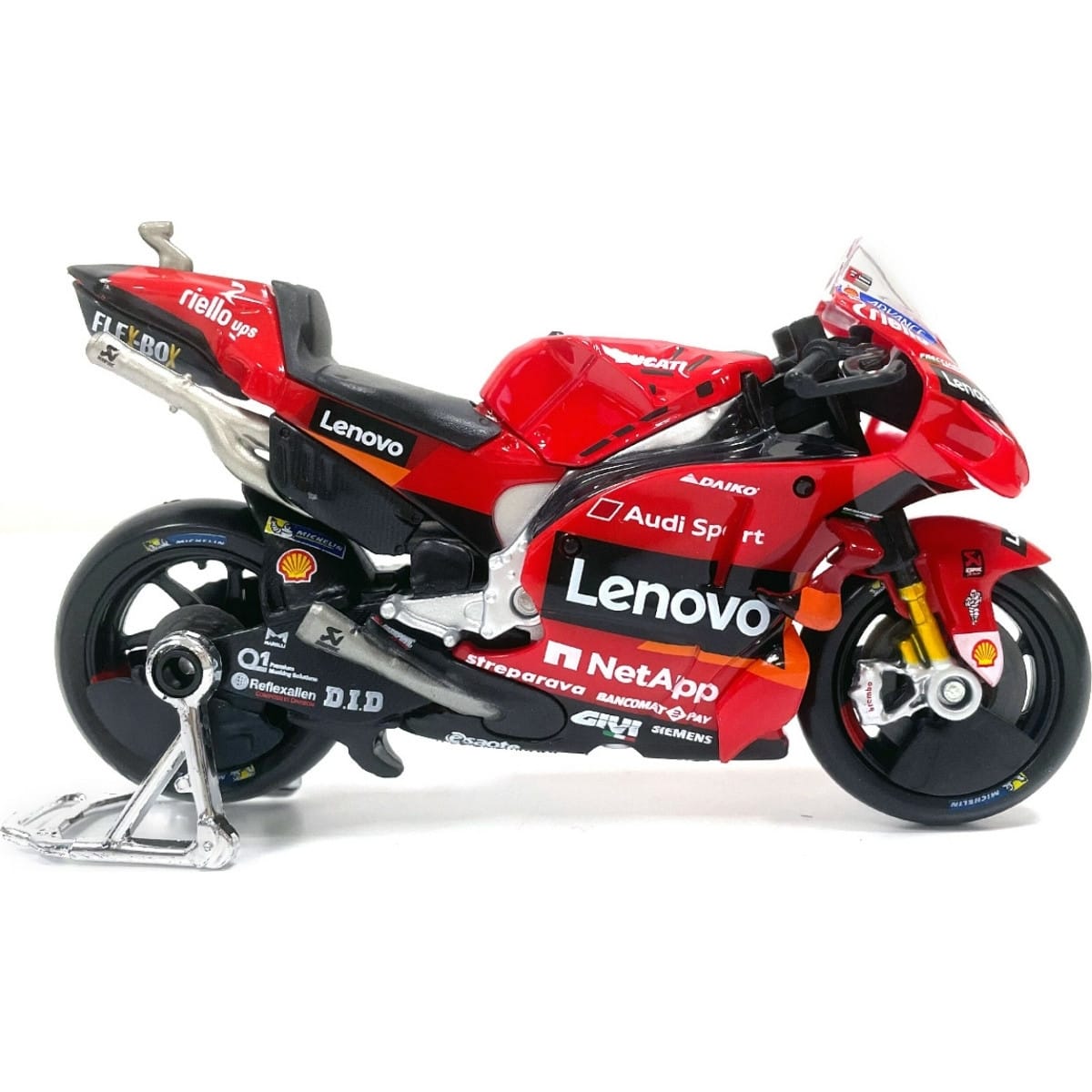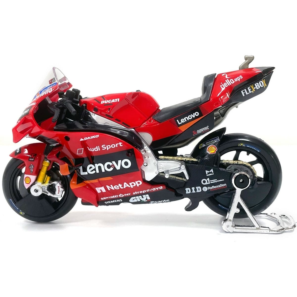 Voici la miniature de la moto GP Ducati Lenovo fidèlement reproduite.