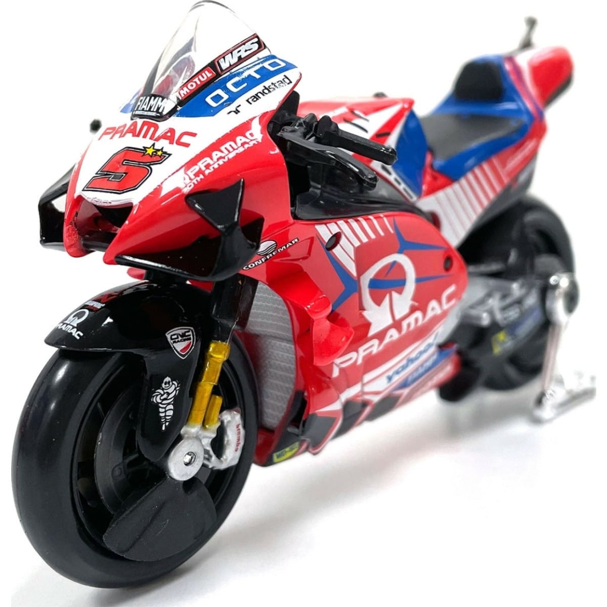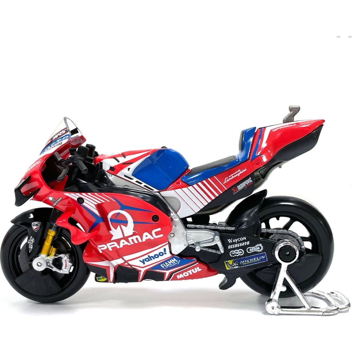Voici la miniature de la moto GP Ducati Pramac fidèlement reproduite.
