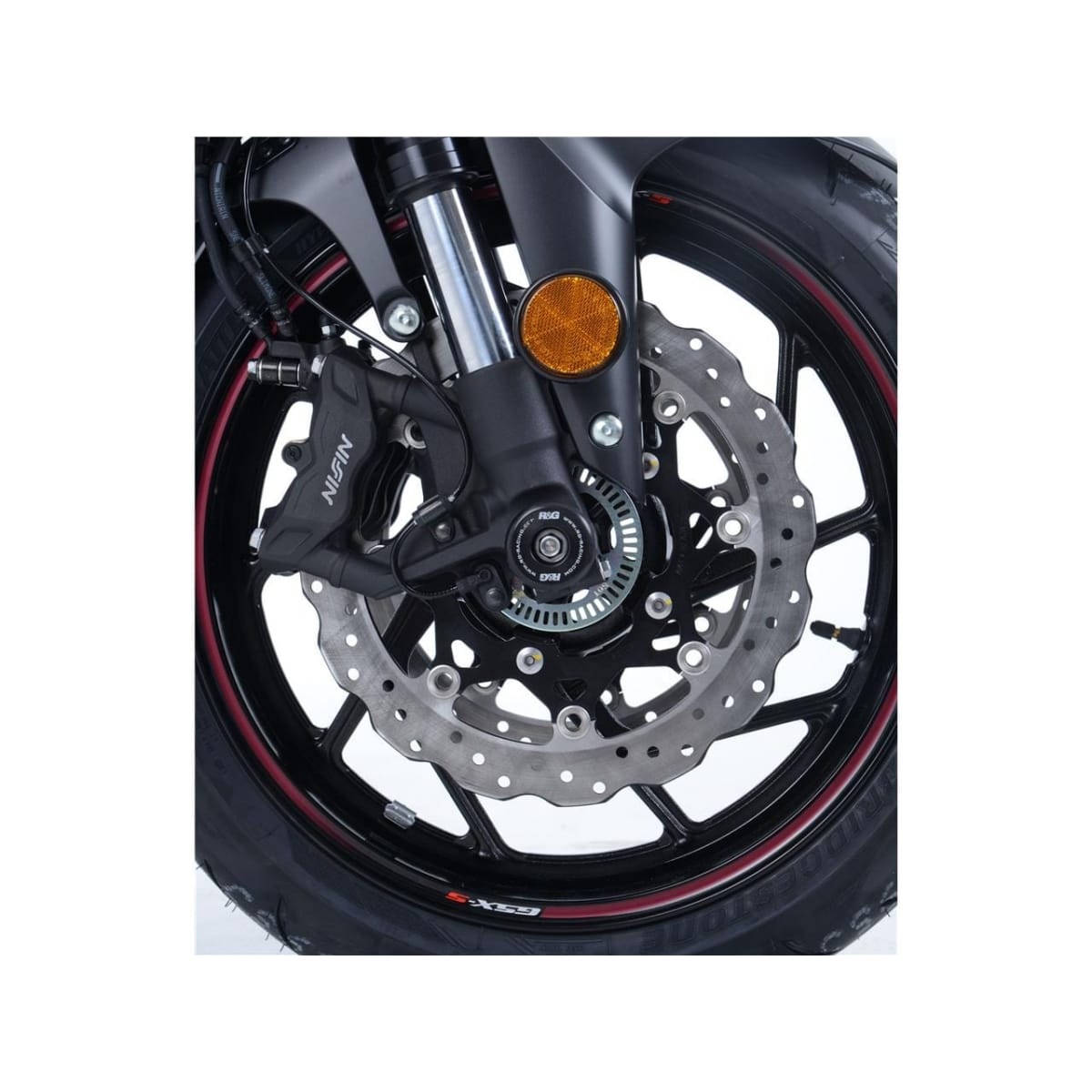 R&G Racing nous présente sa protection de fouche en coloris noir pour Suzuki GSX-S750. Elles permettent de préserver le bas de fourche ainsi que les disques et étriers de freins, en cas de coup ou de chute. Les protections sont en plastique moulé et se fixent par des pions de protection sur les embouts d'axe de roue .