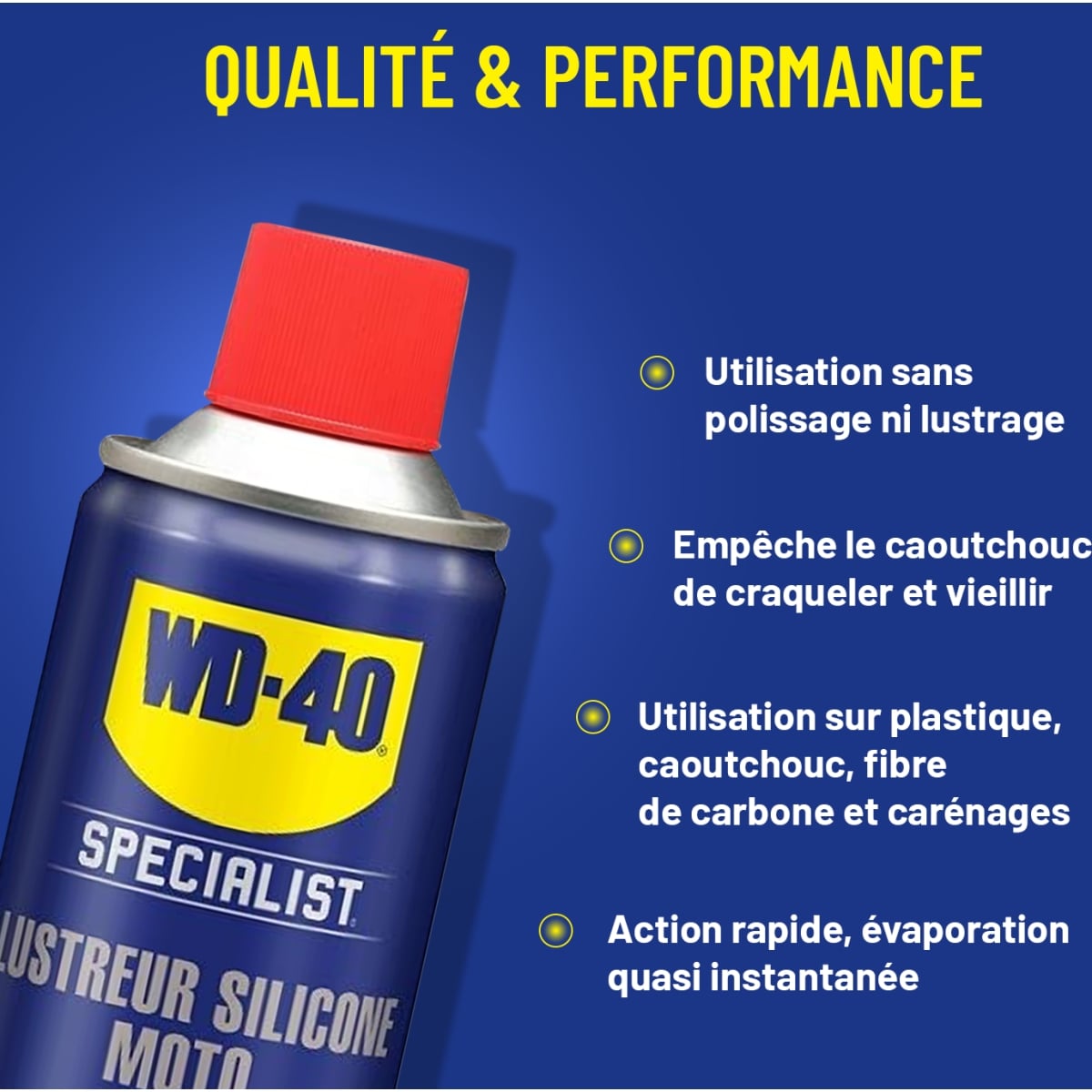 Nous vous conseillons d'utiliser le spray lustreur silicone sur de la fibre de carbone ou du métal.