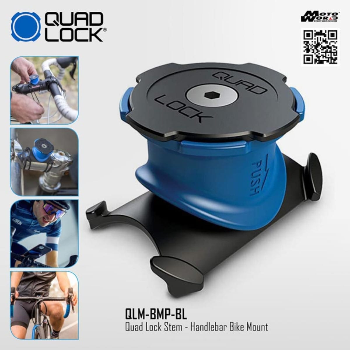 Ce support est compatible avec toutes les coques Quad Lock (en option). Vous pourrez installer cette dernière très facilement et la détacher tout aussi simplement. Pour finir, son design fin et compact permet une adaptation parfaite à votre guidon de vélo.