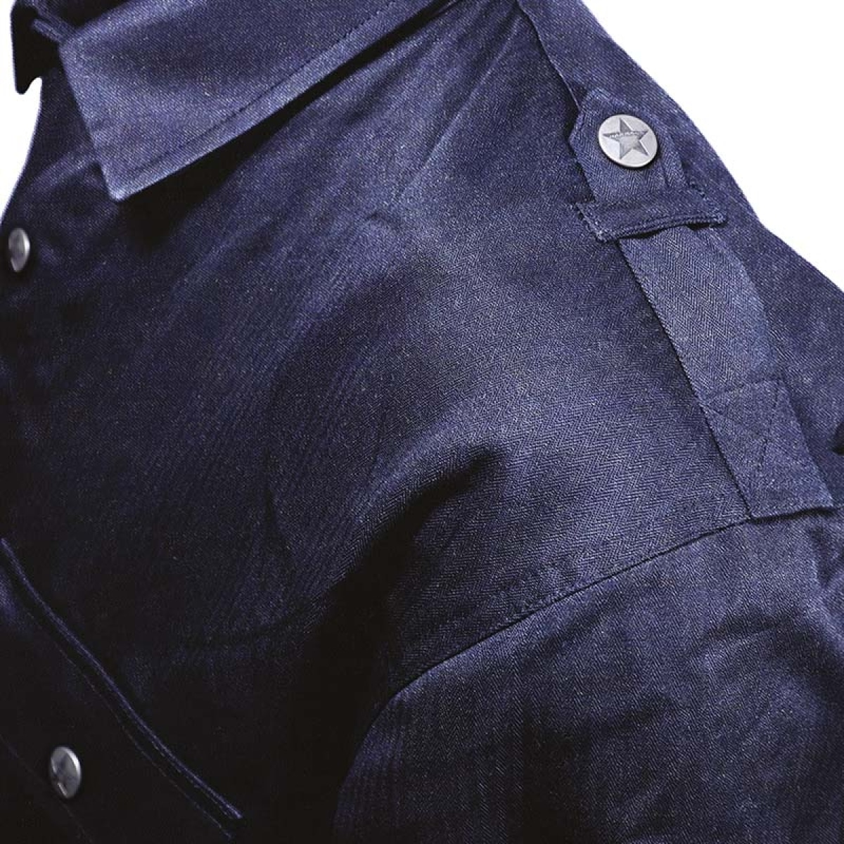 Harisson vous présente sa surchemise moto, la Battle en coloris bleu.