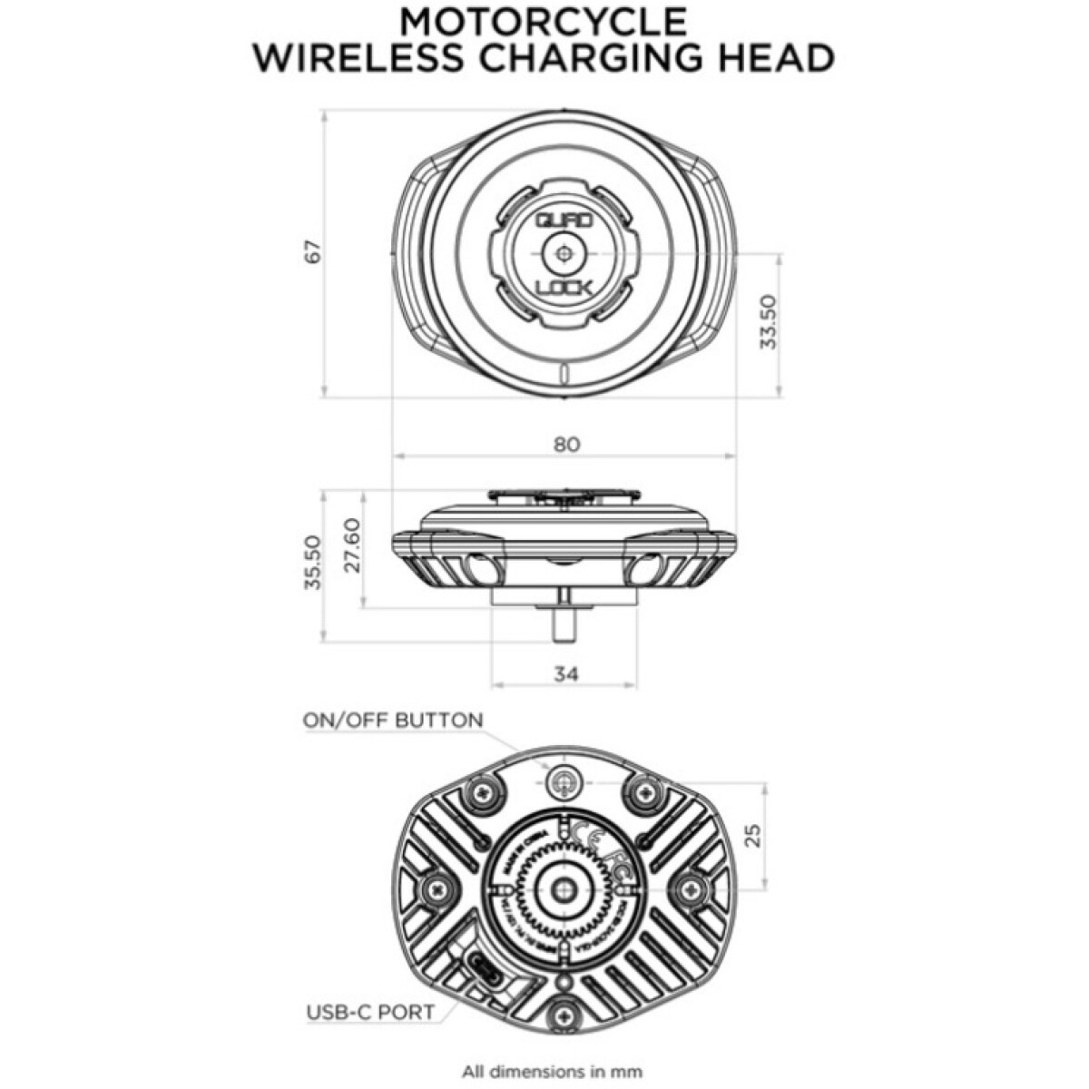 TETE DE RECHARGE QUAD LOCK V2 ETANCHE FIL BATTERIE
